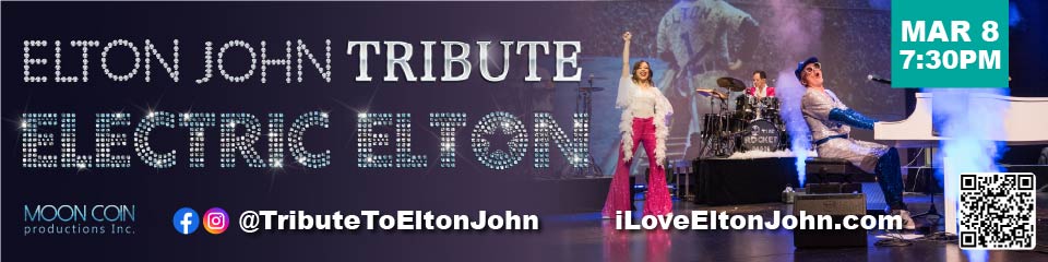Attention Elton John fans! Moon Coin Productions (Producers of ABBA Tribute “ABRA Cadabra” and Eagles Tribute “Take It To The Limit”) Presents Electric Elton – A Tribute to Elton John from Vancouver performing in Vacaville for the 1st time on March 8, 2026.
